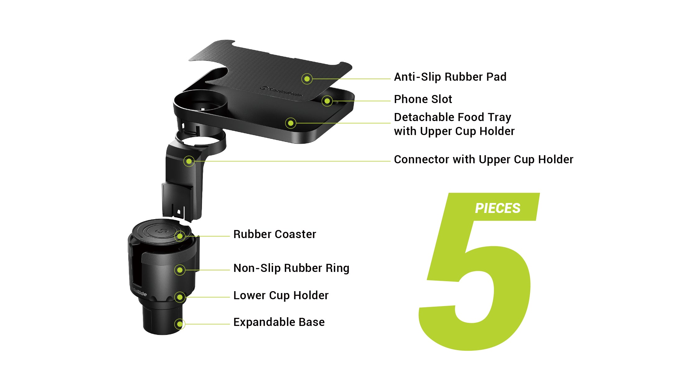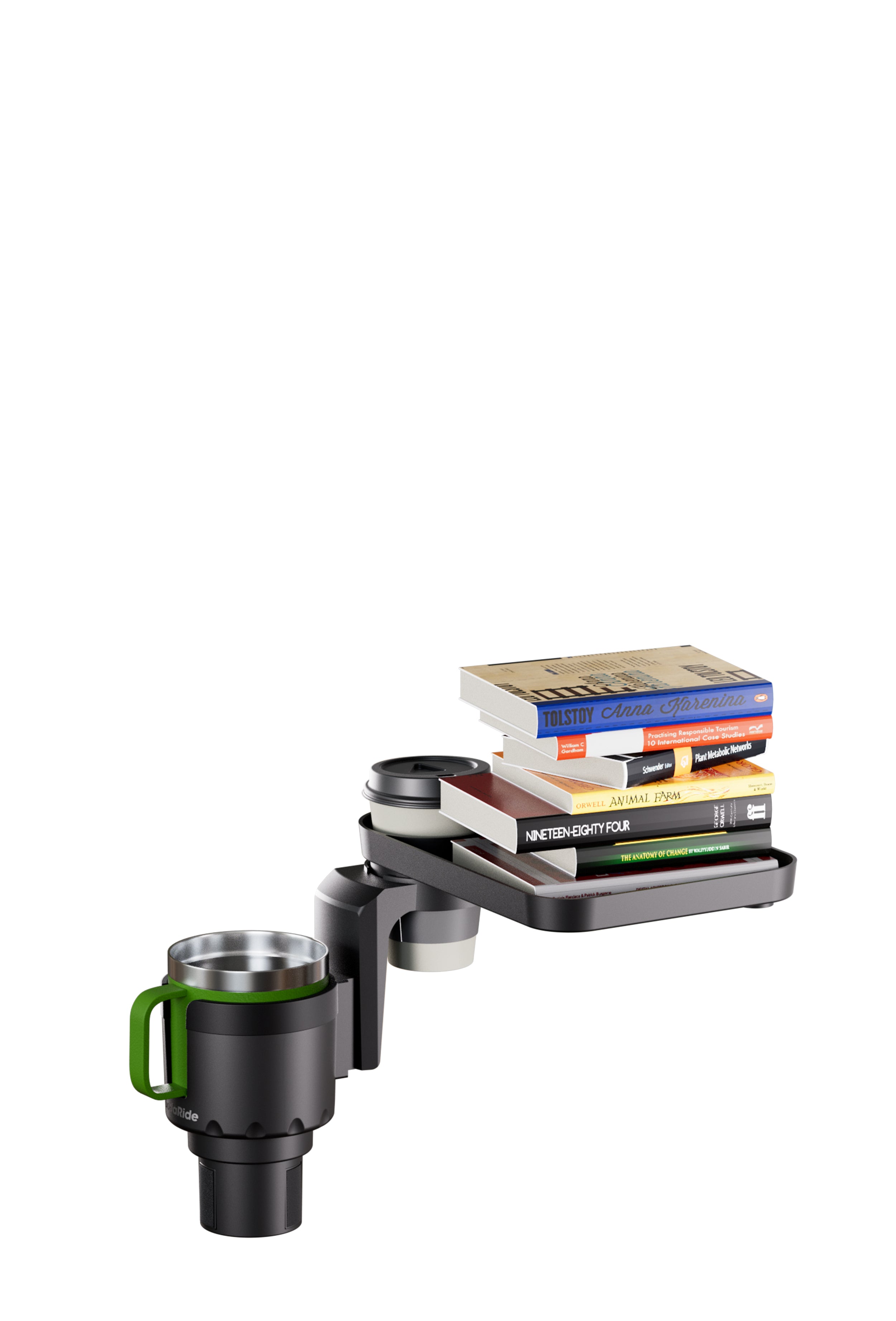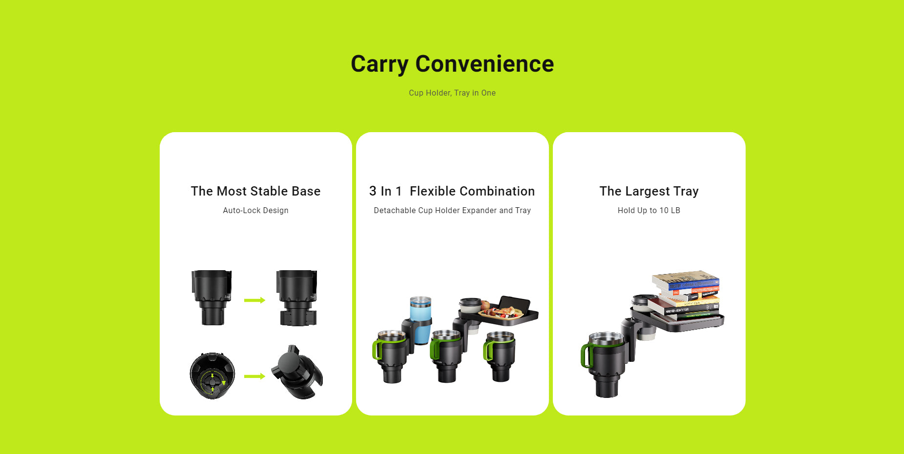 Multifunctional Cup Holder: 360-degree rotation tray with Non-skid rubber sheet can be utilized as a dinner tray or an organizer of small accessories. The tray attached to the upper cup holder can be detached to meet different needs.