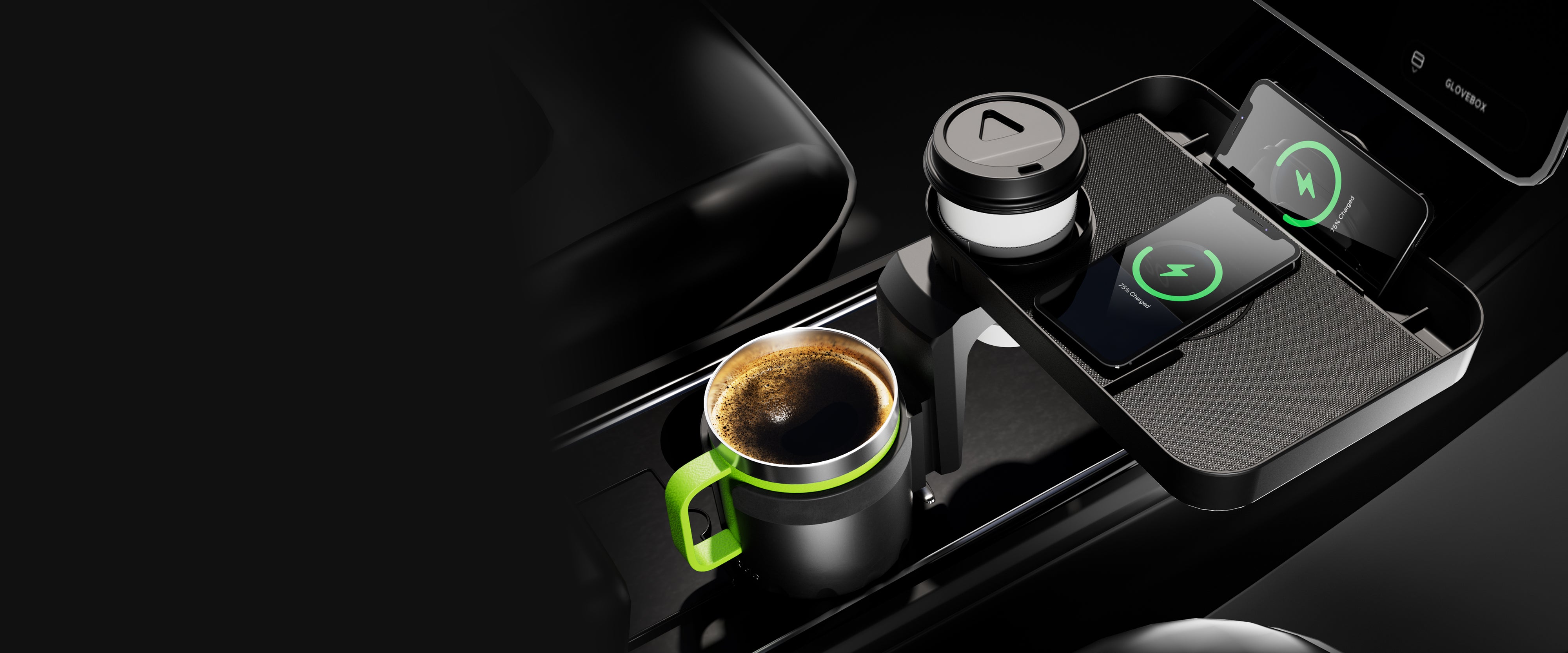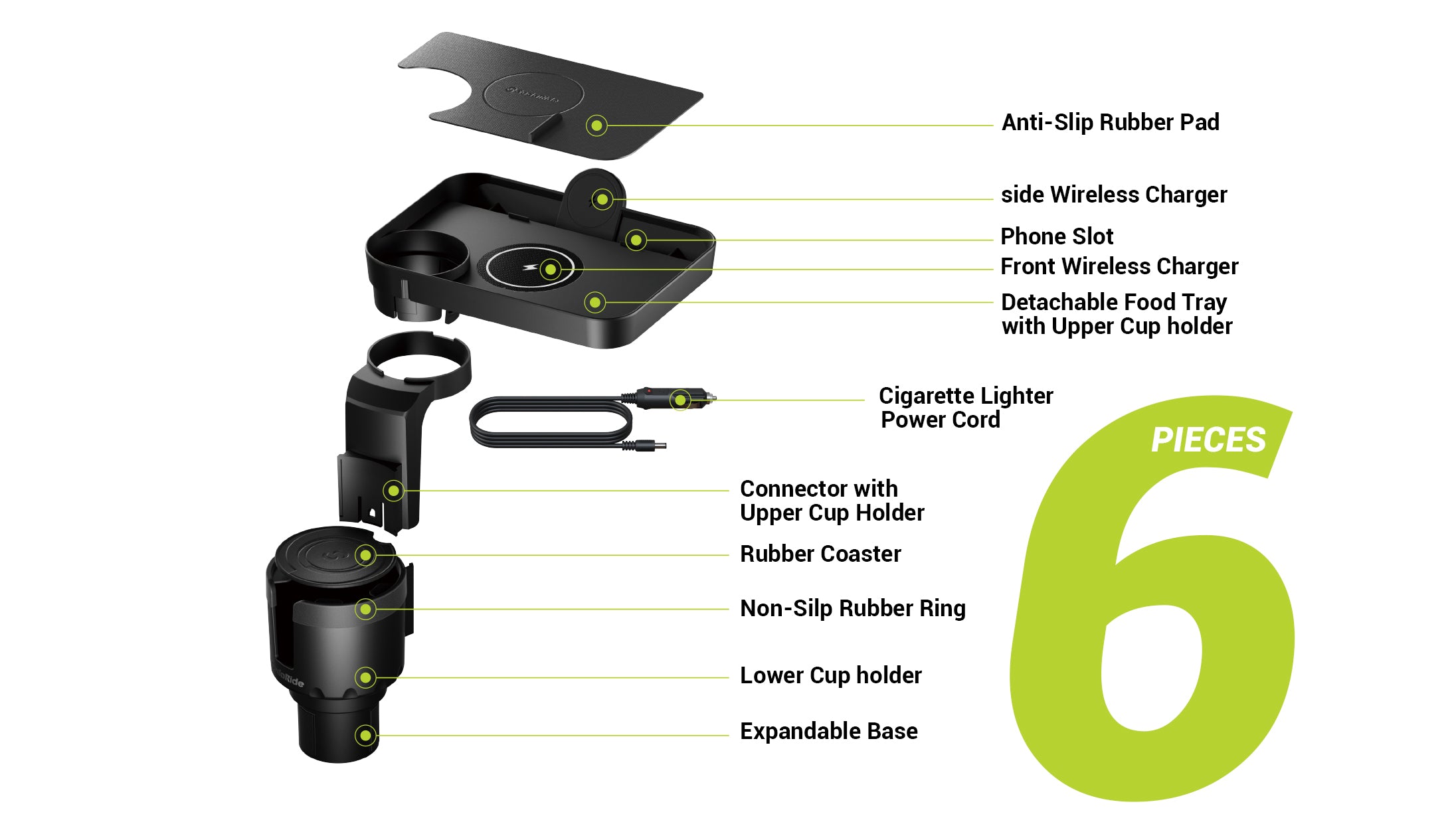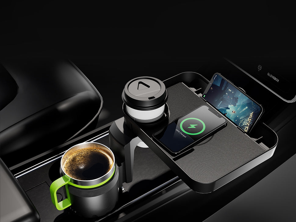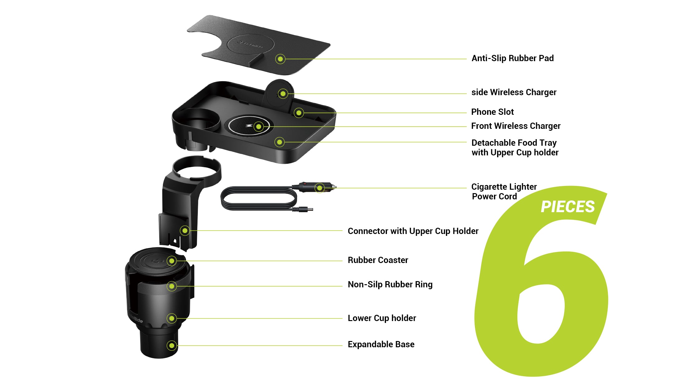 Unmatched Flexibility: The 4-in-1 cup holder is a space-saving accessory that functions as either a single or dual cup holder and doubles as a food tray with wireless charging capabilities. Whether streaming movies or gaming, keep your devices fully charged and securely in place with our stability guard and non-slip mat.