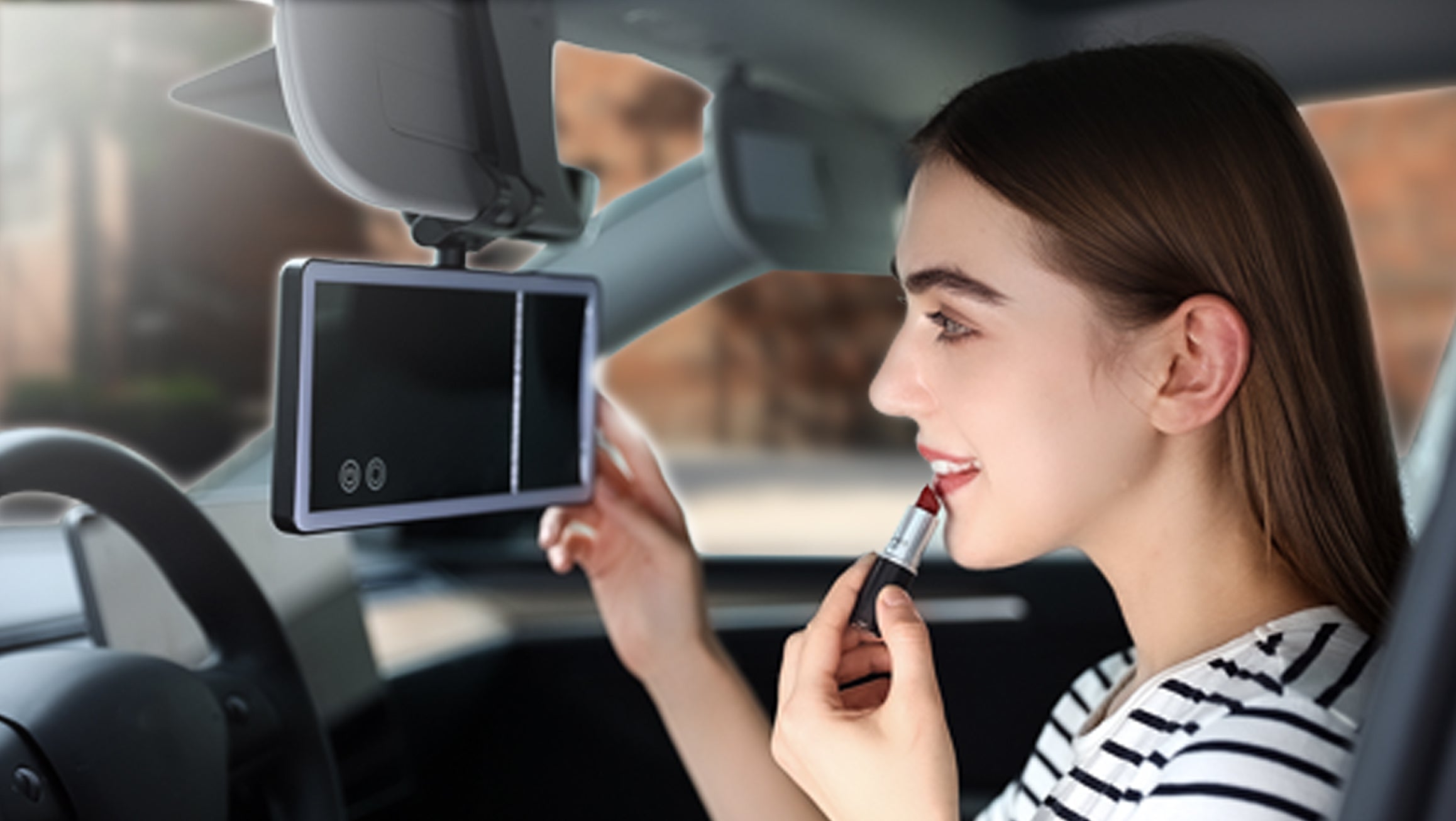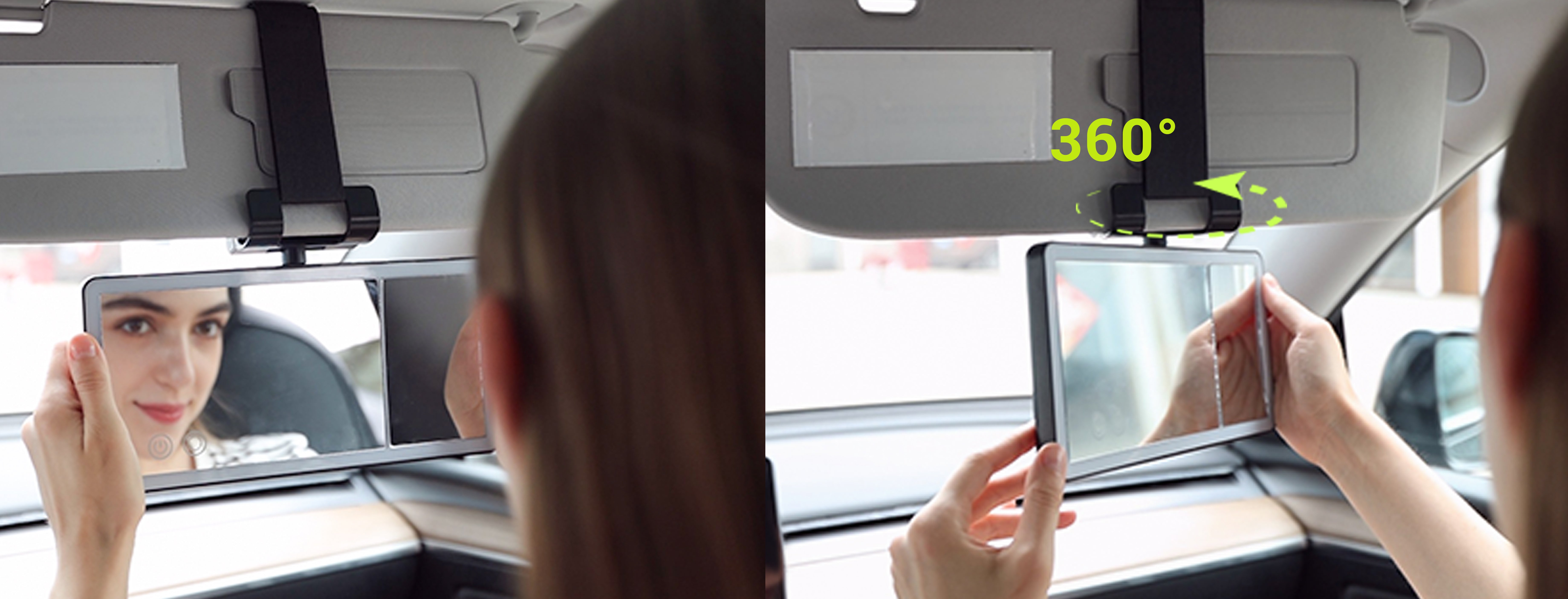 Patented Neck Protection Design: Car mirror can be pulled down for use, adjusted to your comfortable angle at will, and can be rotated 360°. You can makeup in the car comfortably, no need to stretch your neck and won't feel tired.